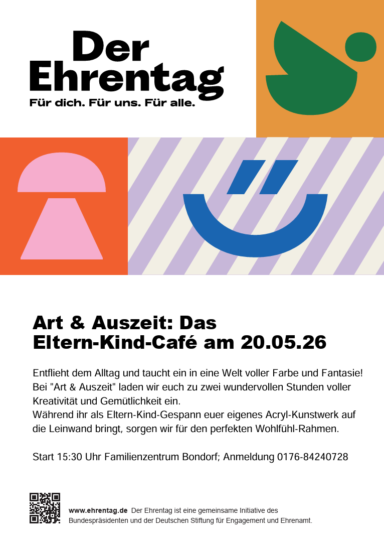 Während ihr als Eltern-Kind-Gespann unter liebevoller Anleitung euer eigenes Acryl-Kunstwerk auf die Leinwand bringt, sorgen wir für den perfekten Wohlfühl-Rahmen. Genießt leckeren Kaffee, wärmenden Kakao und entspannte Gespräche mit anderen Eltern in lockerer Café-Atmosphäre. Wir zeigen euch Schritt für Schritt, wie euer Bild gelingt – ganz ohne Druck und mit viel Raum für eigene Ideen.
