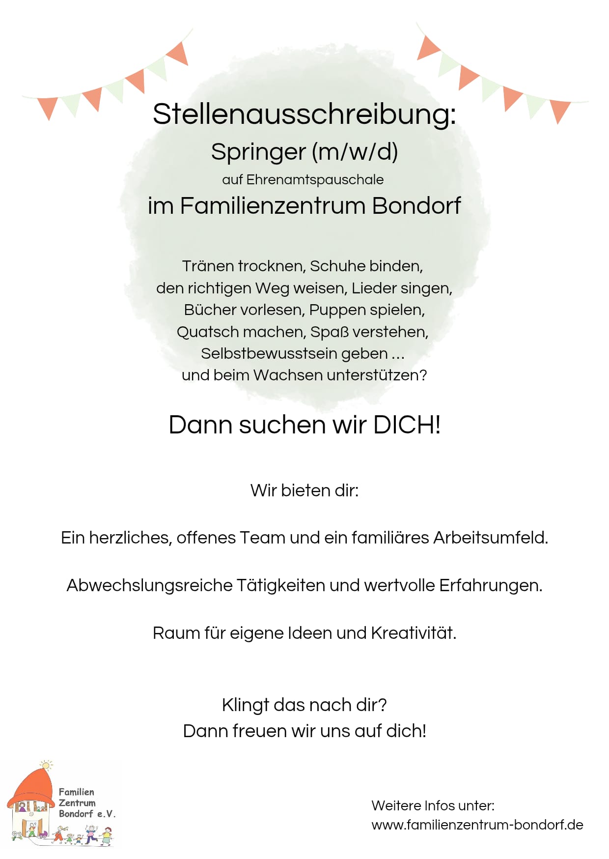 Springer (m/w/d) oder Aushilfen (m/w/d) für unsere Spielgruppen